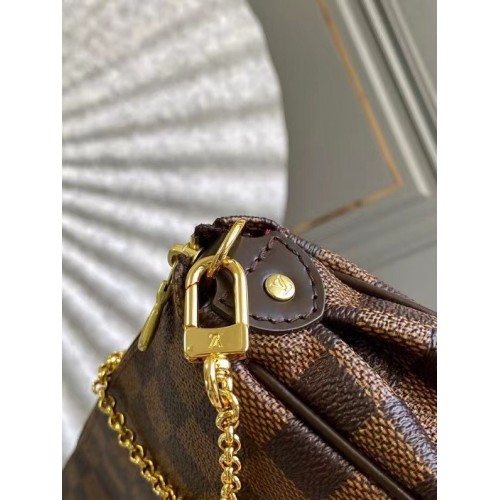 The versatile Pochette Favorite MM looks delightful in Damier Ebène canvas. Its pure, feminine shape..