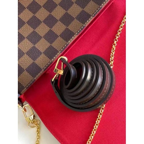 The versatile Pochette Favorite looks delightful in Damier canvas.Its pure,feminine shape makes it i..