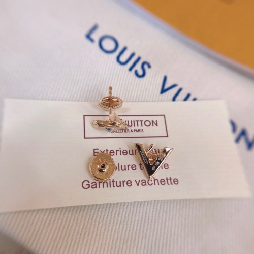 The LV Volt ear stud in 18-karat gold offers a striking new interpretation of the iconic LV initials, featuring a large L and a smaller V set with a brilliant diamond. The design's sharp slices lend strength and modernity to the signature. It forms part of the LV Volt collection, whose pieces can be mixed and matched at will.