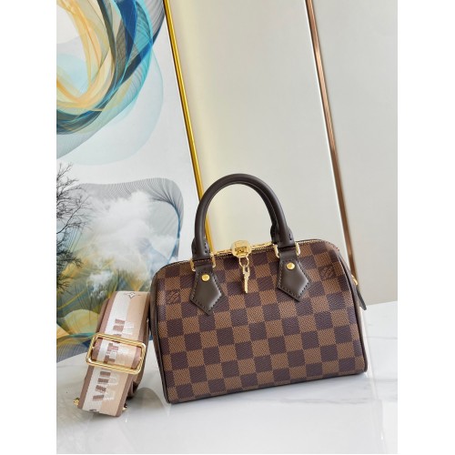 The Speedy Bandoulière 25 in graphic Damier Ebene canvas is an ideal city bag for every day. Origina..