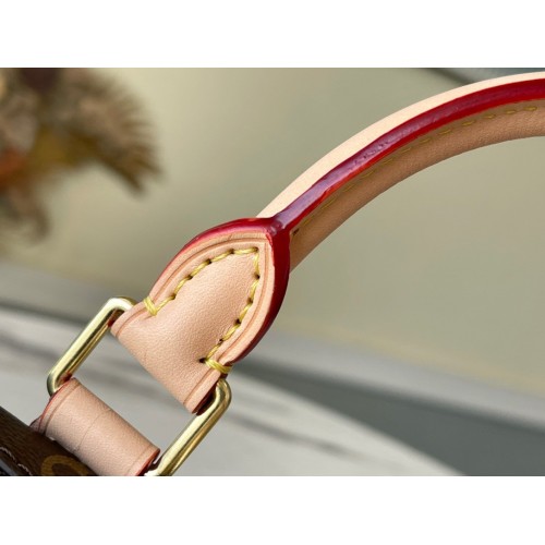Like a diminutive version of the House’s historic Speedy travel bag, the Speedy Bandoulière 20 handbag is crafted from Monogram canvas with natural cowhide trim. In addition to the rolled leather top handles, there’s a wide detachable textile strap with a woven Louis Vuitton signature. This bag’s classic design is completed with red textile lining.