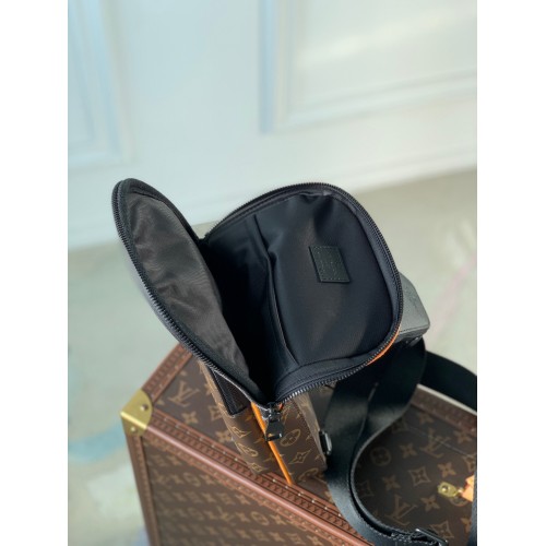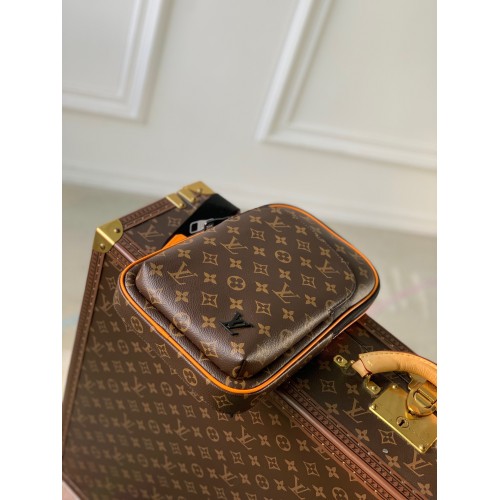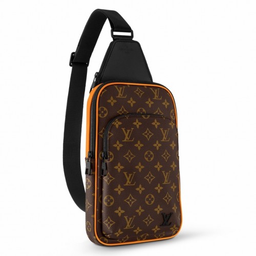 Made from Monogram Macassar canvas with saffron-orange leather piping, the Avenue Slingbag is a up-to-the-minute way to transport everyday necessities. The adjustable strap can be attached to the right or left side of the bag, giving carry options. There's a useful small zipped pocket at the top where the strap joins the bag.
