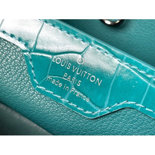 Named for the Rue des Capucines in Paris, where Louis Vuitton opened for business in 1854, the Capucines MM handbag was first introduced in 2013. Superbly crafted from Crocodile-embossed calfskin, it features a flap which can be worn two ways: outside to reveal a Monogram Flower, or inside to display the leather-wrapped LV Initials. Light enough to carry all day long, by hand, on the shoulder or worn cross-body with the detachable strap.