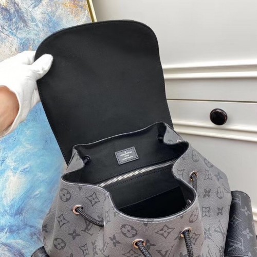 The Christopher PM backpack takes on a striking aspect in Monogram Eclipse Reverse canvas with black..
