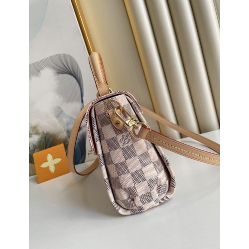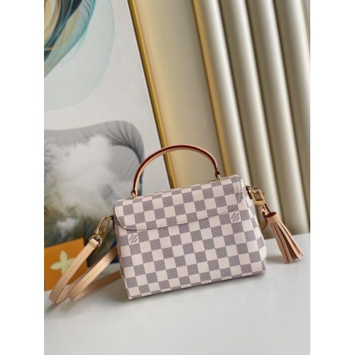 A compact bag with a modern shape, the Croisette hand bag is made from Damier Azur canvas and featur..