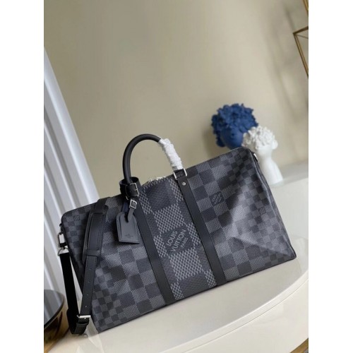 Louis Vuitton Keepall Bandouliere 50 Bag In Damier Graphite 3D Canvas N50016