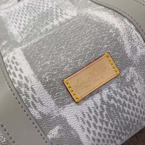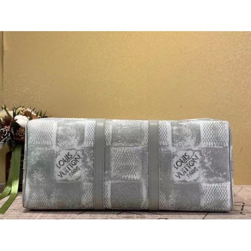 The Keepall 50B takes on an original Louis Vuitton signature look with Damier Graphite 3D canvas in ..