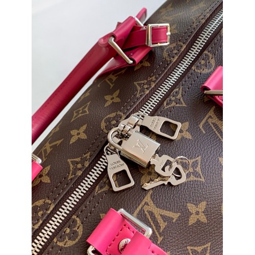 The Keepall Bandouliere 50 travel bag is made from Monogram Macassar canvas with leather top handles..