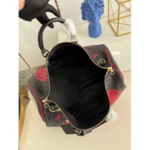 The Keepall Bandoulière 55 is made from black leather embossed with a Monogram pattern and decorated with prints and patches inspired by the universe of basketball championship jackets. The vibrant designs and basketball netting on the end of the bag firmly anchor this versatile bag in the LV x NBA SEASON 2 capsule collection.