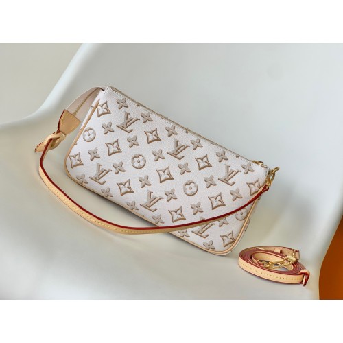 Featuring a gold-color buckle on its front pocket, the Maxi Multi Pochette Accessoires handbag is made from colored Monogram canvas. Gorgeous details such as white borders on the pocket flap and strap and the shaded miniature Monogram pattern bring the House’s iconic style. The perfect micro bag, it enables elbow carry or sporty-chic cross-body wear.
