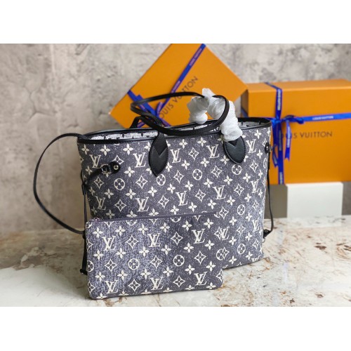 Louis Vuitton Neverfull MM Bag In Grey Monogram Denim M21465