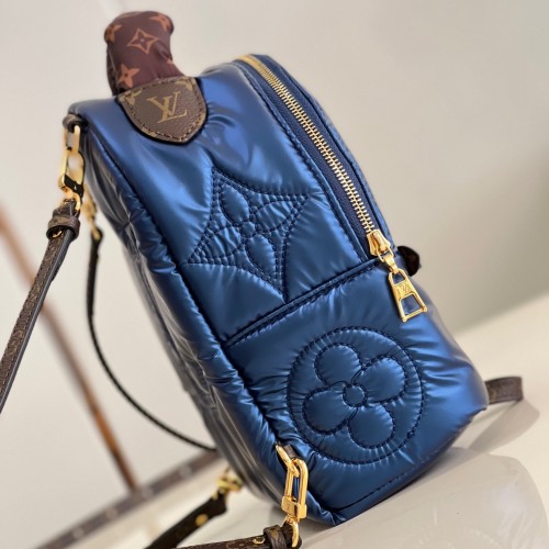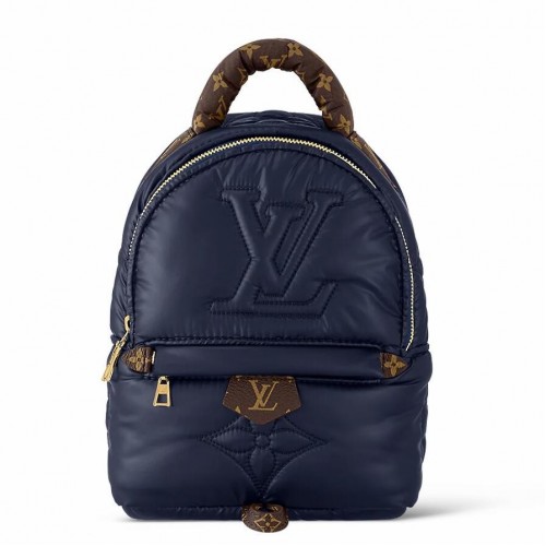 The charming LV Pillow Palm Springs Mini backpack is dressed for the winter season in cozy, padded Econyl® recycled nylon, embroidered with Monogram motifs. Fitted with a puffy handle and adjustable canvas straps, this easy-to-wear bag has a sporty-chic allure, equally at home on city streets or at trendy ski resorts.