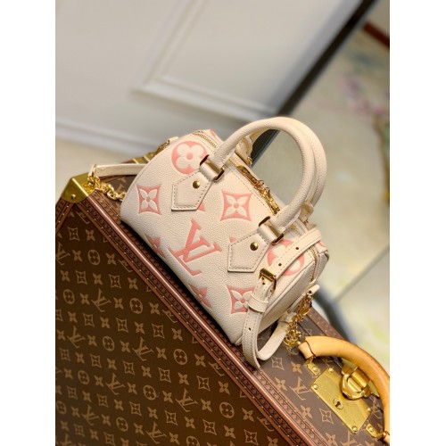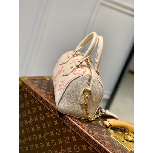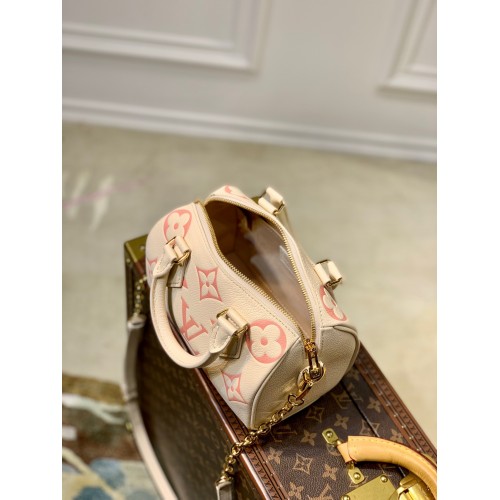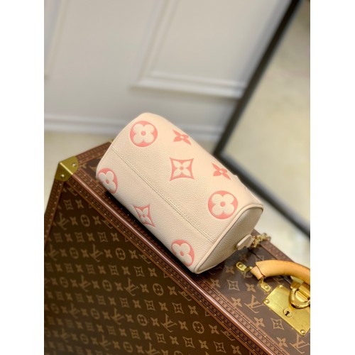 The Speedy 20 Bandoulière handbag is made from Monogram Empreinte leather in a soft pastel colorway...