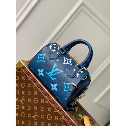From city life to summer parties, this covetable Speedy Bandoulière 20 handbag goes everywhere. Part of the new Dégradé capsule, it is crafted from Monogram Empreinte embossed leather in colors to complement the season’s silhouettes. Fitted with rolled Toron handles, it fits in the crook of the elbow or can be worn hands-free thanks to the adjustable strap.