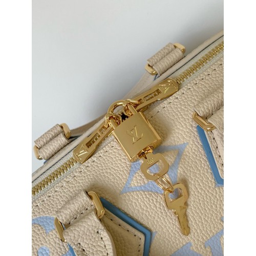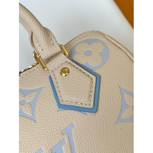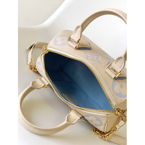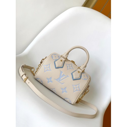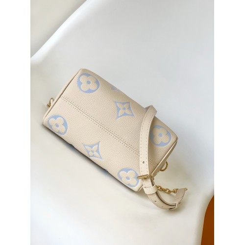 The Speedy 20 Bandoulière handbag is made from Monogram Empreinte leather in a soft pastel colorway...