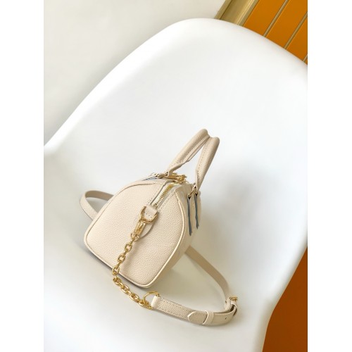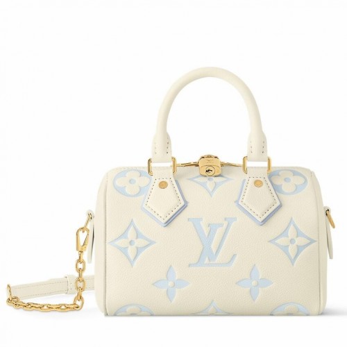 The Speedy 20 Bandoulière handbag looks fresh and fashionable this season, dressed in two-tone “milkshake” colorways. Made from Monogram Empreinte embossed leather, this House icon is a versatile city bag, fitted with two Toron handles and a removable strap for optimal versatility. Small in scale, it can hold a smartphone, keys and a compact wallet.