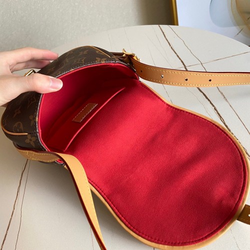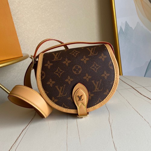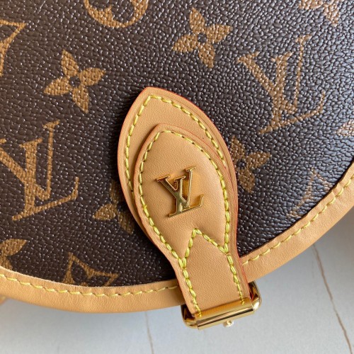 Nicolas Ghesquière introduces a new version of the versatile and easy-to-wear Tambourin handbag, made from Monogram canvas and natural cowhide leather. Small and lightweight with a practical inside pocket, this functional bag is ideal for everyday use. It can be worn over the shoulder or cross-body.