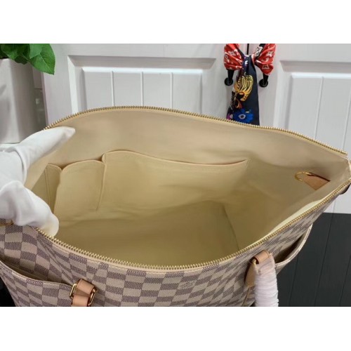 The ultimate city tote in Damier Azur canvas with pockets galore. Magazines, tickets, sunglasses are all easily within grasp, while the bag itself is a comfortable fit for any shoulder.