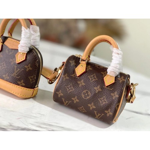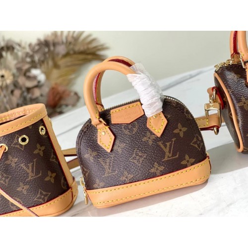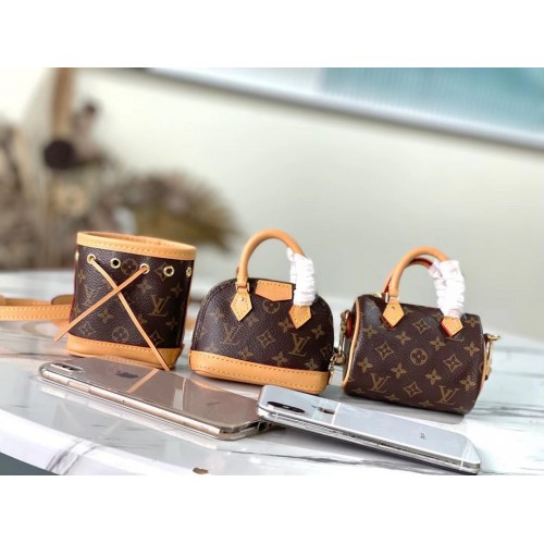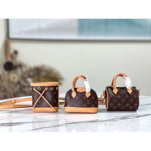 The Trio Mini Icones is a celebration of three iconic Louis Vuitton bags: the Speedy, the Alma and the Noé. The three beautifully crafted and detailed miniatures come on a removable, adjustable shoulder strap, but each can removed and clipped onto another bag or a belt. This versatile, collectible design makes a perfect gift.