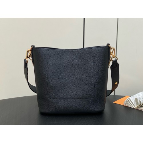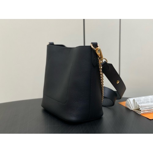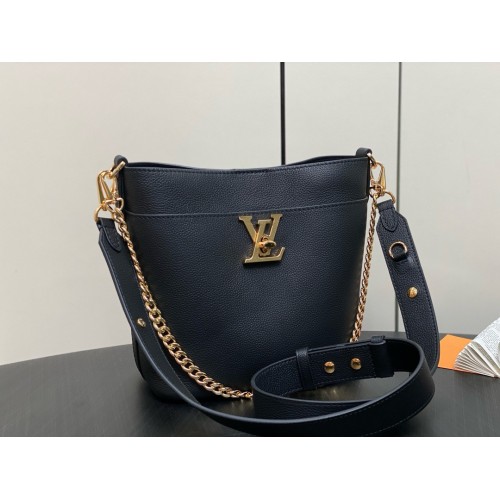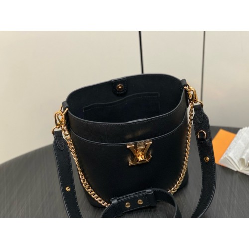 The Lock and Walk is a sleek bucket bag fashioned from grained calf leather. Lightweight and comfortable to carry, the bag combines casual ease with Parisian chic. A large front compartment secured with the LV turn lock provides convenient access to essential belongings. The detachable smart strap and golden chain handle provide for different carry styles.