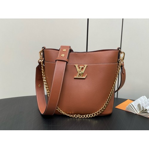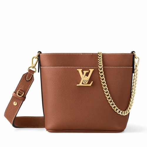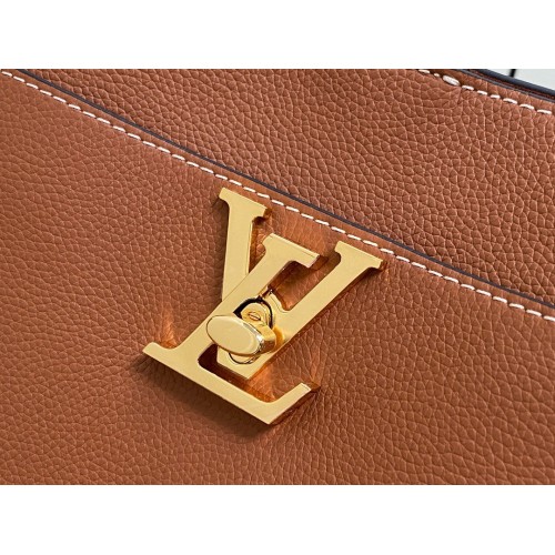 Louis Vuitton Lock and Walk Bag in Brown Grained Leather M24165