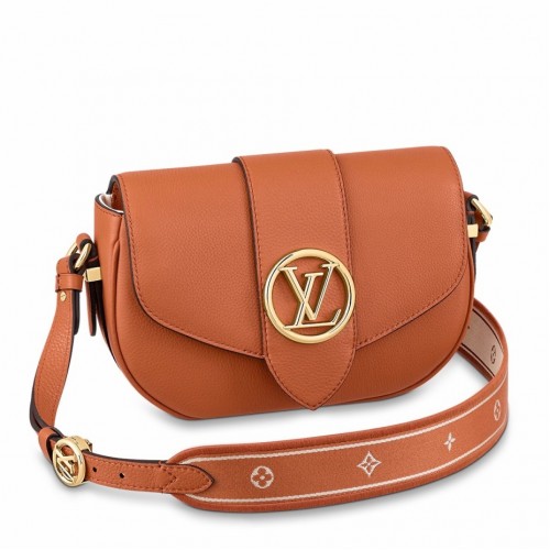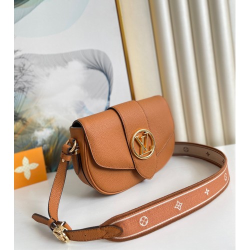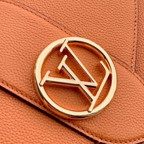Crafted from grained calfskin, the LV Pont 9 Soft PM handbag is signed with the golden LV Circle, a ..
