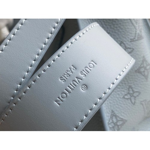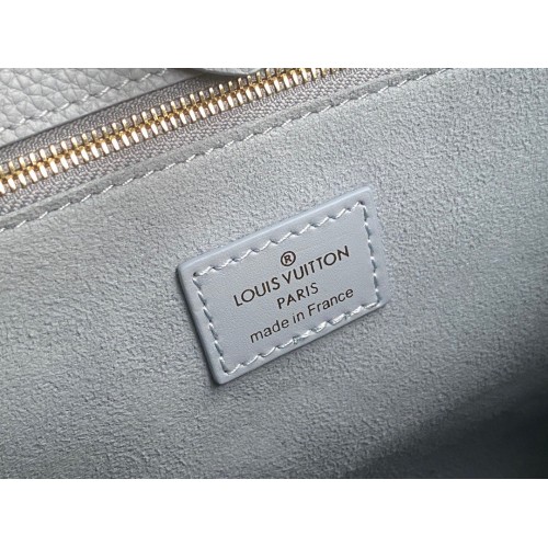 The On My Side PM tote bag is made from calf leather in a soft gray colorway, with sides in Mahina calf leather and its perforated Monogram pattern. Functional, this tote has two outside pockets for quick access to essentials. Two top handles and a removable strap enable shoulder or cross-body carry.