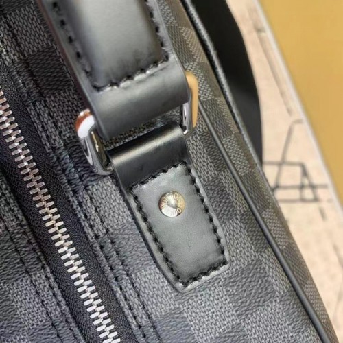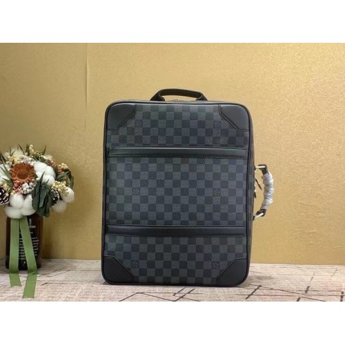 The ideal business bag for men on the move, the Briefcase Backpack offers generous capacity and modern functionality. Made from robust Damier Graphite canvas with trunk-style leather corners, it can be worn cross-body on its shoulder strap, carried brief-case style thanks to a foldable handle, or as a backpack –straps and handle fit neatly into a zipped compartment.
