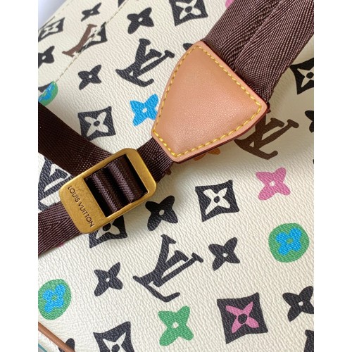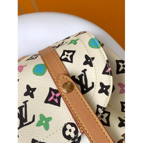 Trimmed with leather in an energetic color that pairs perfectly with Monogram Macassar canvas, this ..