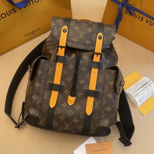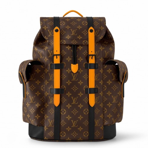 The House’s classic backpack, the Christopher MM, is made from Monogram Macassar canvas with colored..