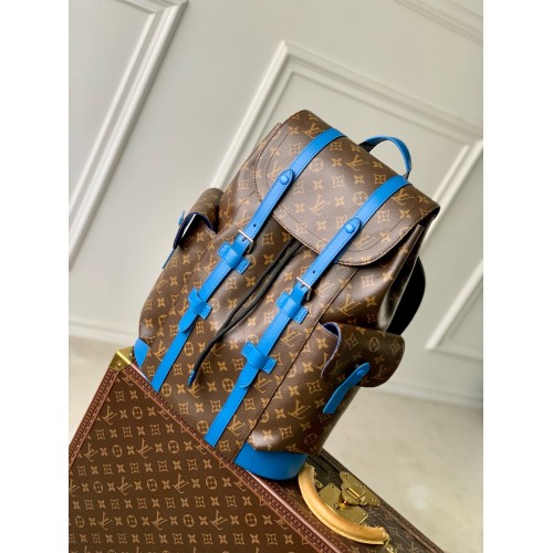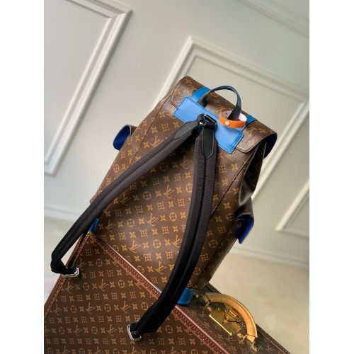 The House’s classic backpack, the Christopher MM, is made from Monogram Macassar canvas with colored..