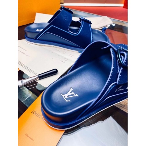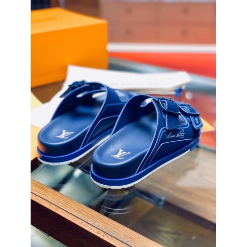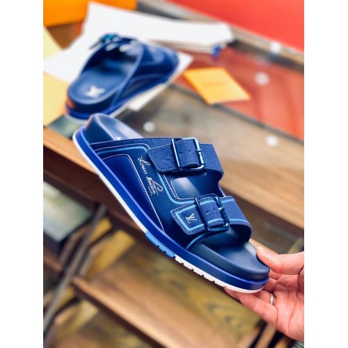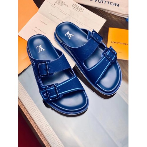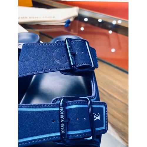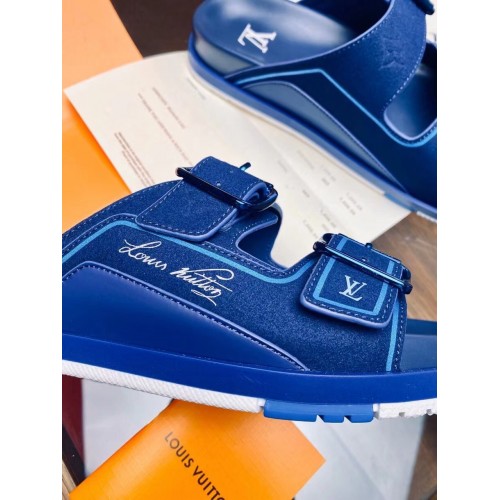 Louis Vuitton LV Trainer Mules In Blue Suede Leather