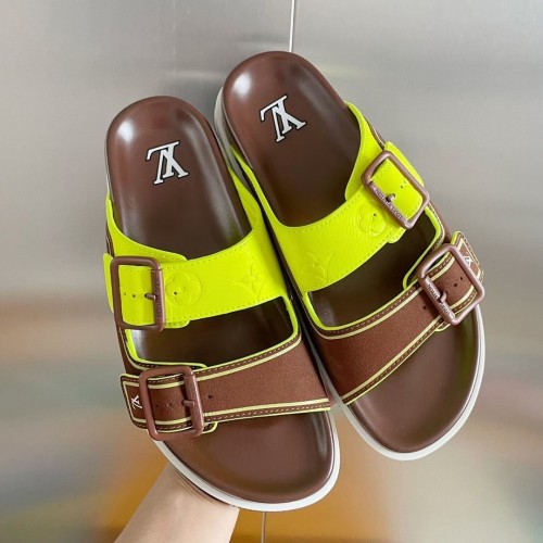 The LV Trainer mule is a lightweight, comfortable style in blue suede calf leather. Its upper strap ..