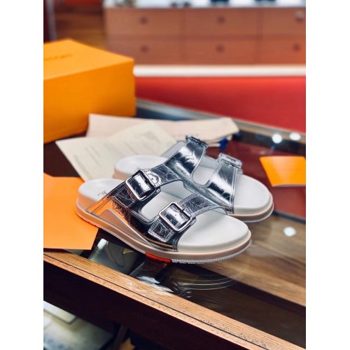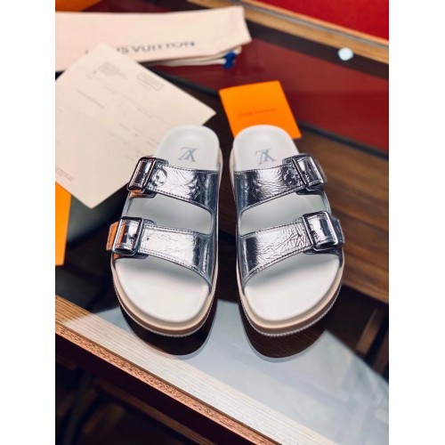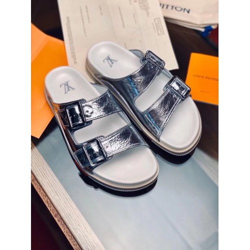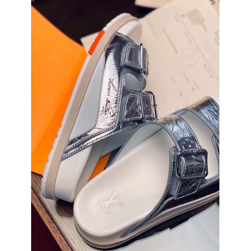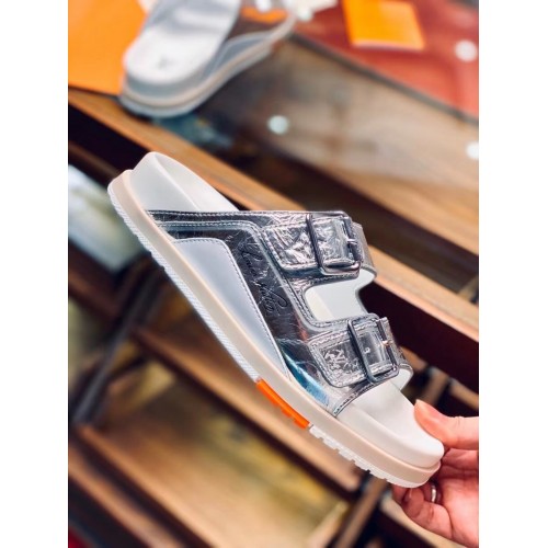 Louis Vuitton LV Trainer Mules In Silver Metallic Leather