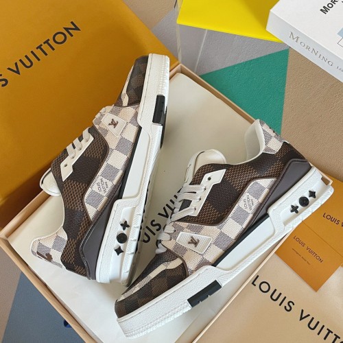 Louis Vuitton Men's LV Trainer Sneakers in Bicolor Damier Canvas