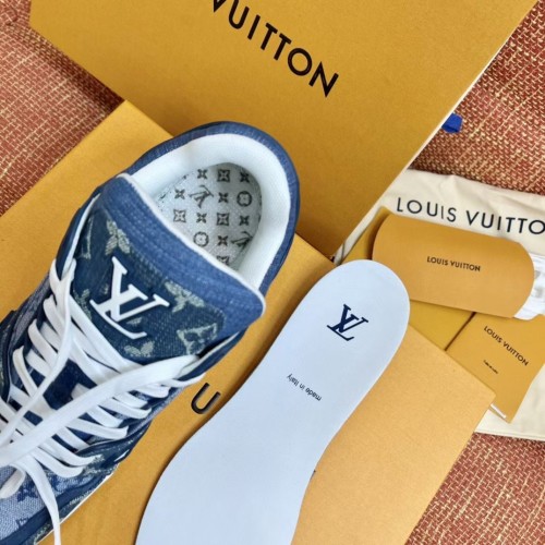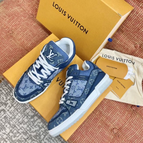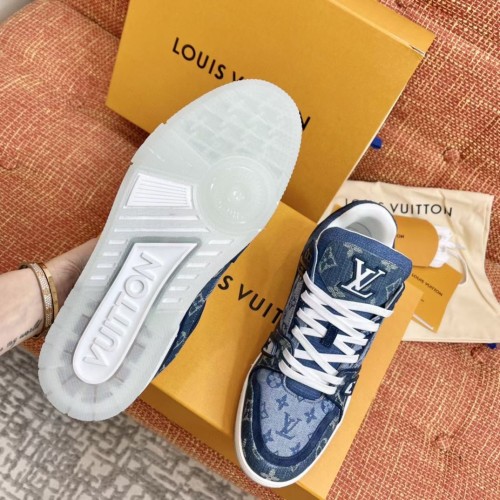 Louis Vuitton Men's LV Trainer Sneakers In Blue Denim with Leather