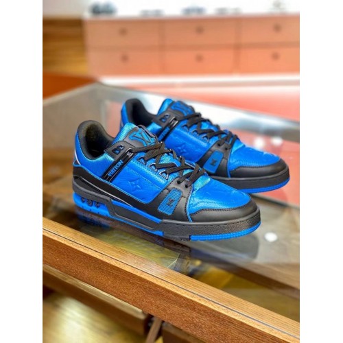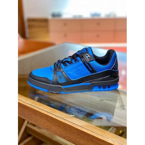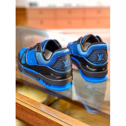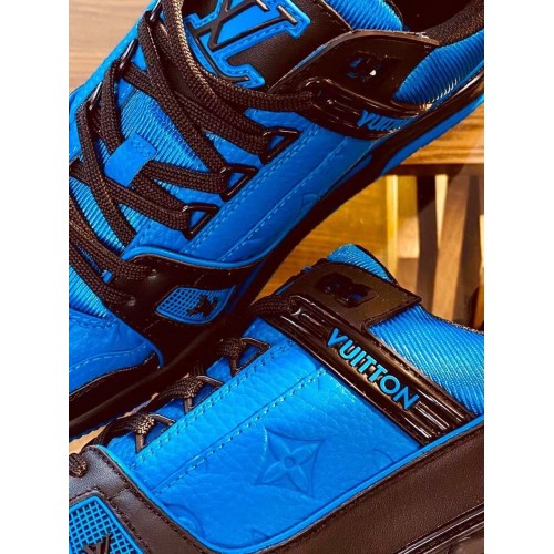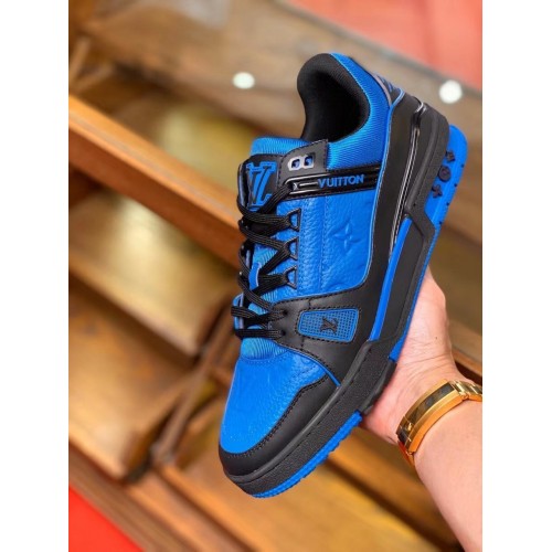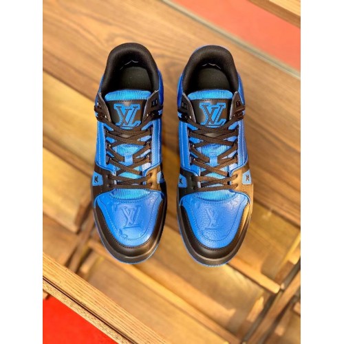 Louis Vuitton Men's LV Trainer Sneakers In Blue Leather