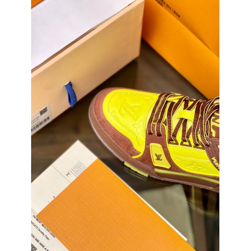 Louis Vuitton Men's LV Trainer Sneakers In Yellow Denim with Leather