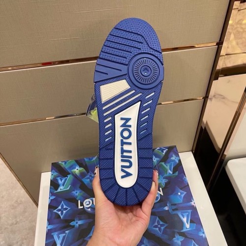 The iconic LV Trainer sneaker boot, designed by Louis Vuitton Artistic Director Virgil Abloh, is rev..