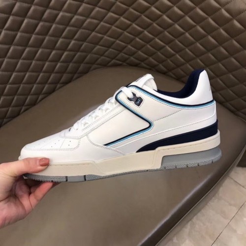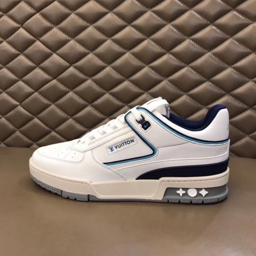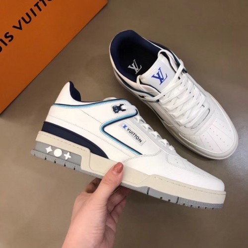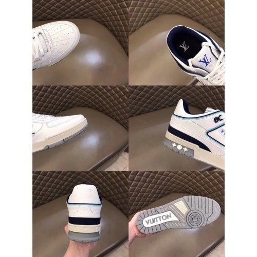 Louis Vuitton Men's LV Trainer Sneakers In White/Blue Leather