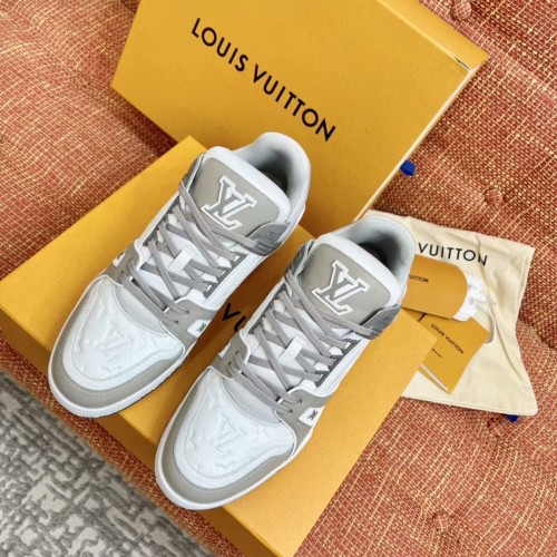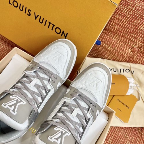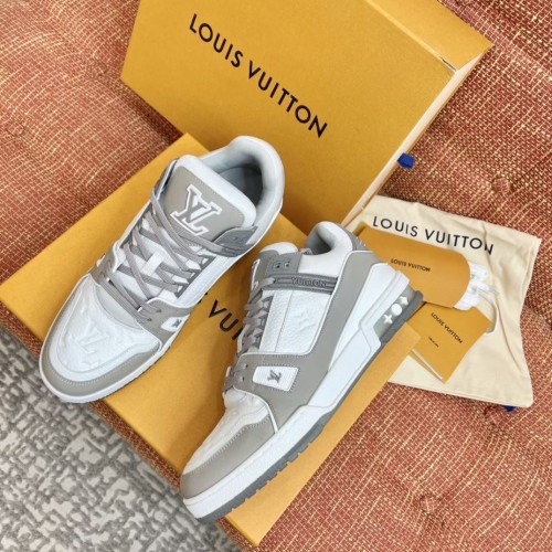 Louis Vuitton Men's LV Trainer Sneakers In White/Grey Leather