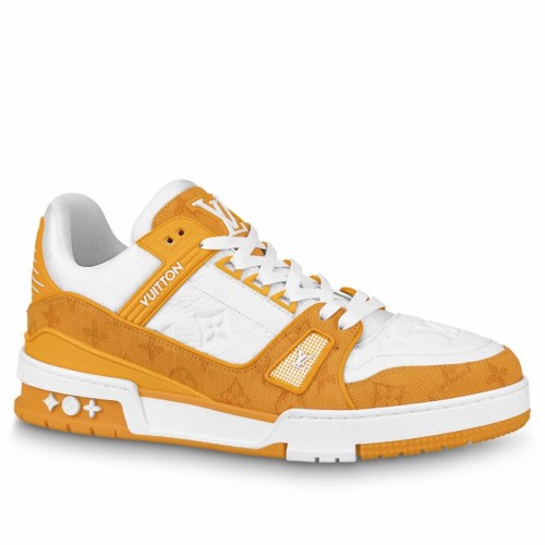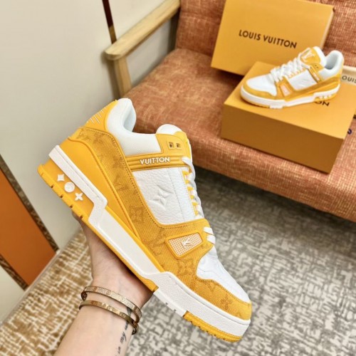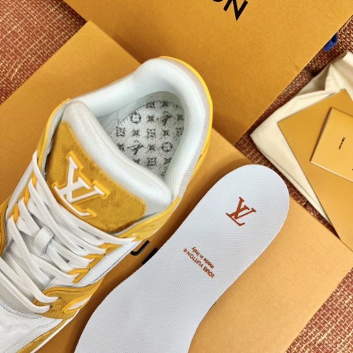 Louis Vuitton Men's LV Trainer Sneakers In Yellow Denim with Leather