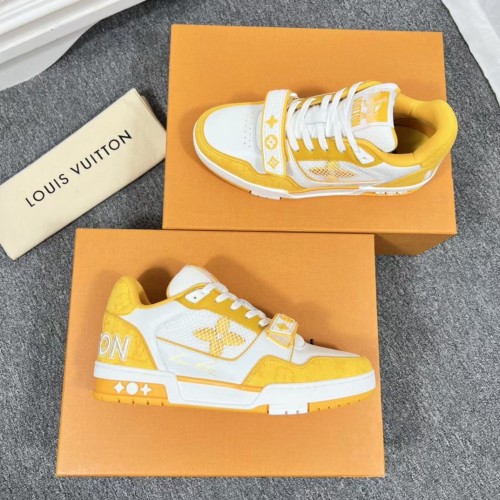 Louis Vuitton Men's LV Trainer Sneakers In Yellow Denim with Leather