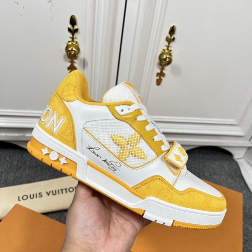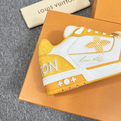 Louis Vuitton Men's LV Trainer Sneakers In Yellow Denim with Mesh