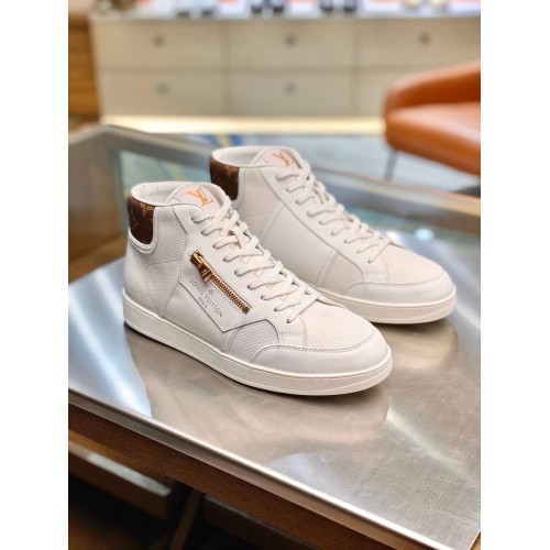 Louis Vuitton Men's Rivoli High-top Sneakers In White Leather