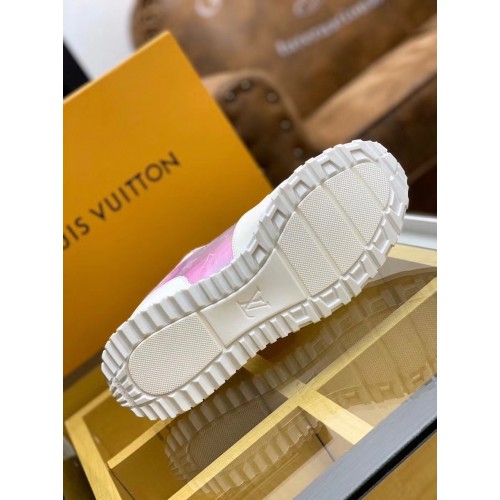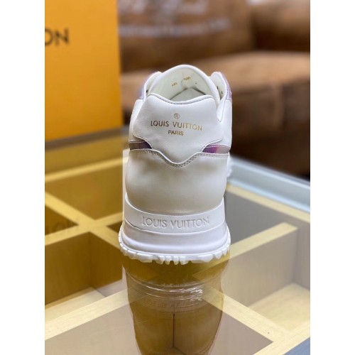 This bicolor version of the Run Away sneaker combines three variations on Louis Vuitton's signature ..
