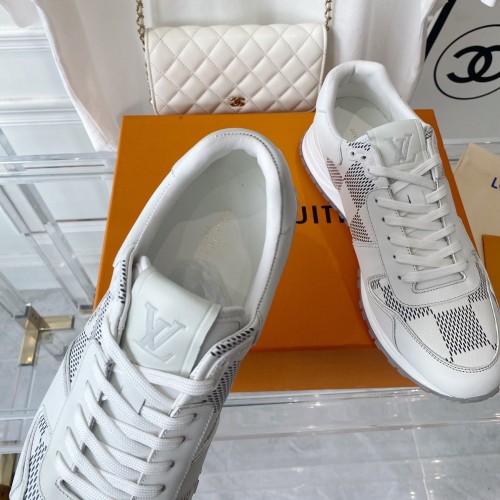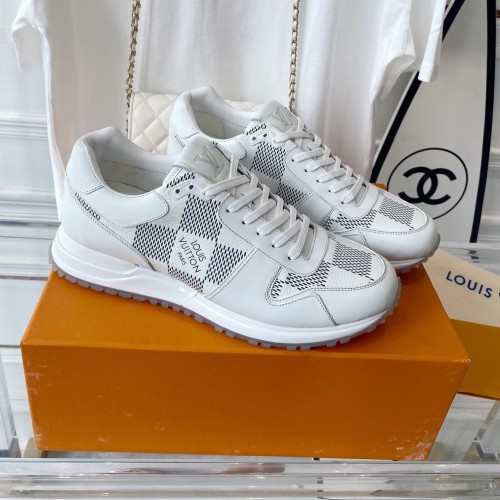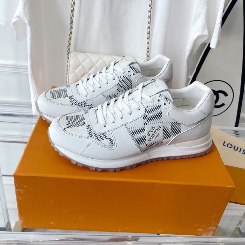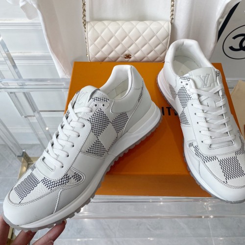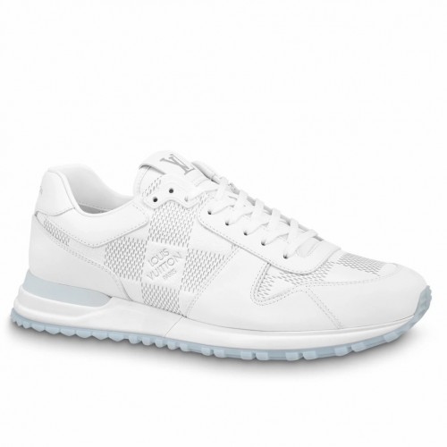 Louis Vuitton Men's Run Away Sneakers in White Damier-embossed Leather