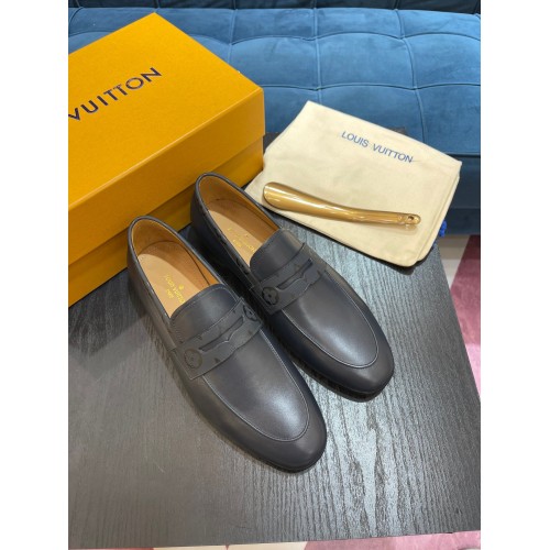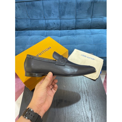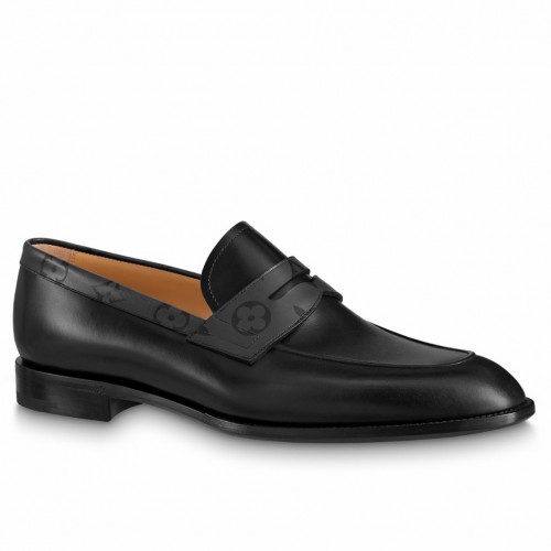 The Saint Germain loafer is crafted from extremely supple waxed calf leather. Its elegant lines are complemented by a discreet Monogram pattern on the collar and strap. Testifying to Louis Vuitton's shoemaking know-how, this model has a traditional sacchetto construction for lightness and flexibility, and is finished with a fine leather outsole.