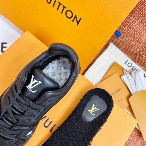 Louis Vuitton Men's Black LV Trainer Sneakers with Wool