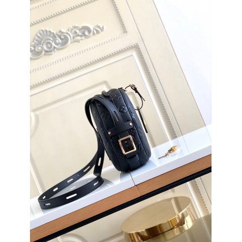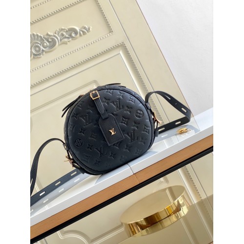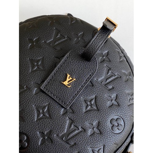 Nicolas Ghesquière’s reinterpretation of the classic hat box with more modern diminutive dimensions, is fashioned from Monogram Empreinte leather. The suppleness of the embossed grained leather perfectly complements the round lines of the bag’s signature shape, making for a piece that is both instantly recognizable and ultra-comfortable.